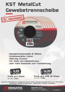 ✨JETZT NEU: KST MetalCut✨ Gewebetrennscheibe in Premiumqualität Unsere Gewebetrennscheibe mit 125mm Scheibendurchmesser besticht durch eine sehr hohe Standzeit bei hervorragenden...