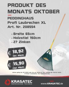 🍁 Unser Produkt des Monats Oktober – zum unschlagbaren Preis! 🍁 PEDDINGHAUS Laubrechen XL – große Arbeitsbreite, geringes Eigengewicht. 🍂...