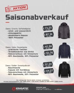 Sichere dir jetzt noch deine funktionale Arbeitskleidung zum Saisonabschluss * hochwertige Softshelljacken, ideal für graue Tage * robuste Sweatjacken und...